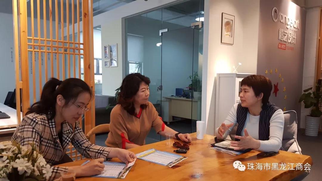 2019年4月1日,珠海市黑龙江商会党支部书记祝旭娟亲自陪同黑河学院美术与设计学院副书记王琦一同走访会员单位橙艺品牌设计顾问有限公司。