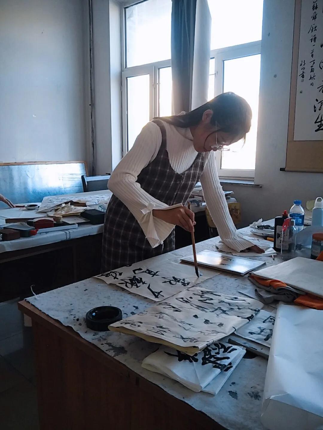 黄晓菲,美术与设计学院2019级书法四班学生,现担任书法四班班长一职。在思想、学习、工作等方面严格要求自己,具有认真负责的工作态度以及乐于付出的精神,在各方面得到了发展。