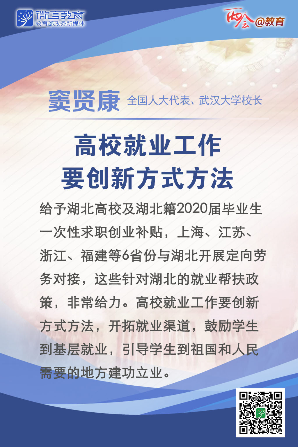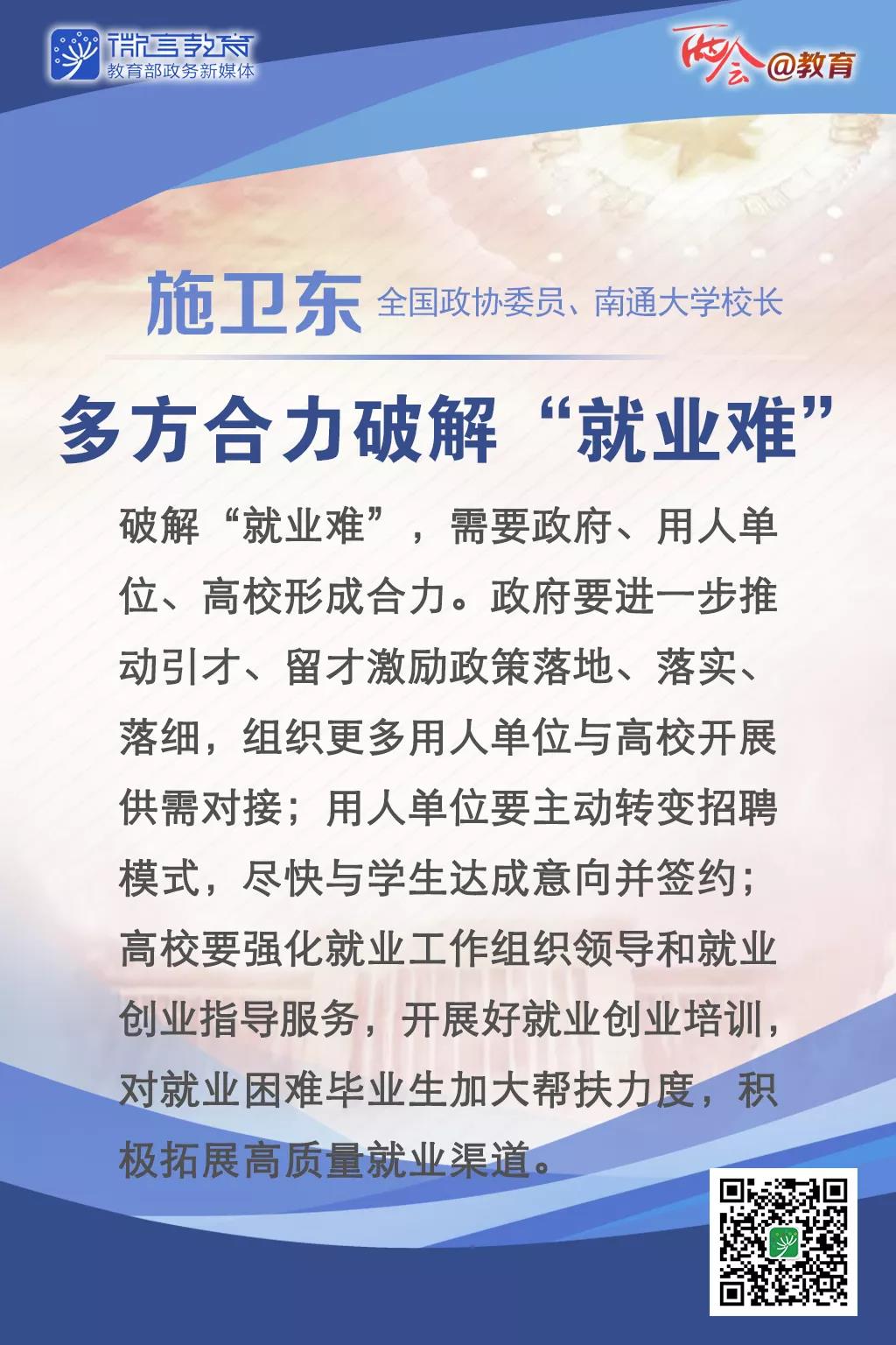 稳就业,保就业,要把高校毕业生就业作为重中之重。两会开幕以来,高校毕业生就业成为代表委员关心的话题之一。创新方式方法、增强学生“云就业”能力、纾解校企供需矛盾……随教育小微一起听听来自教育系统的代表委员提出了哪些建议↓↓↓