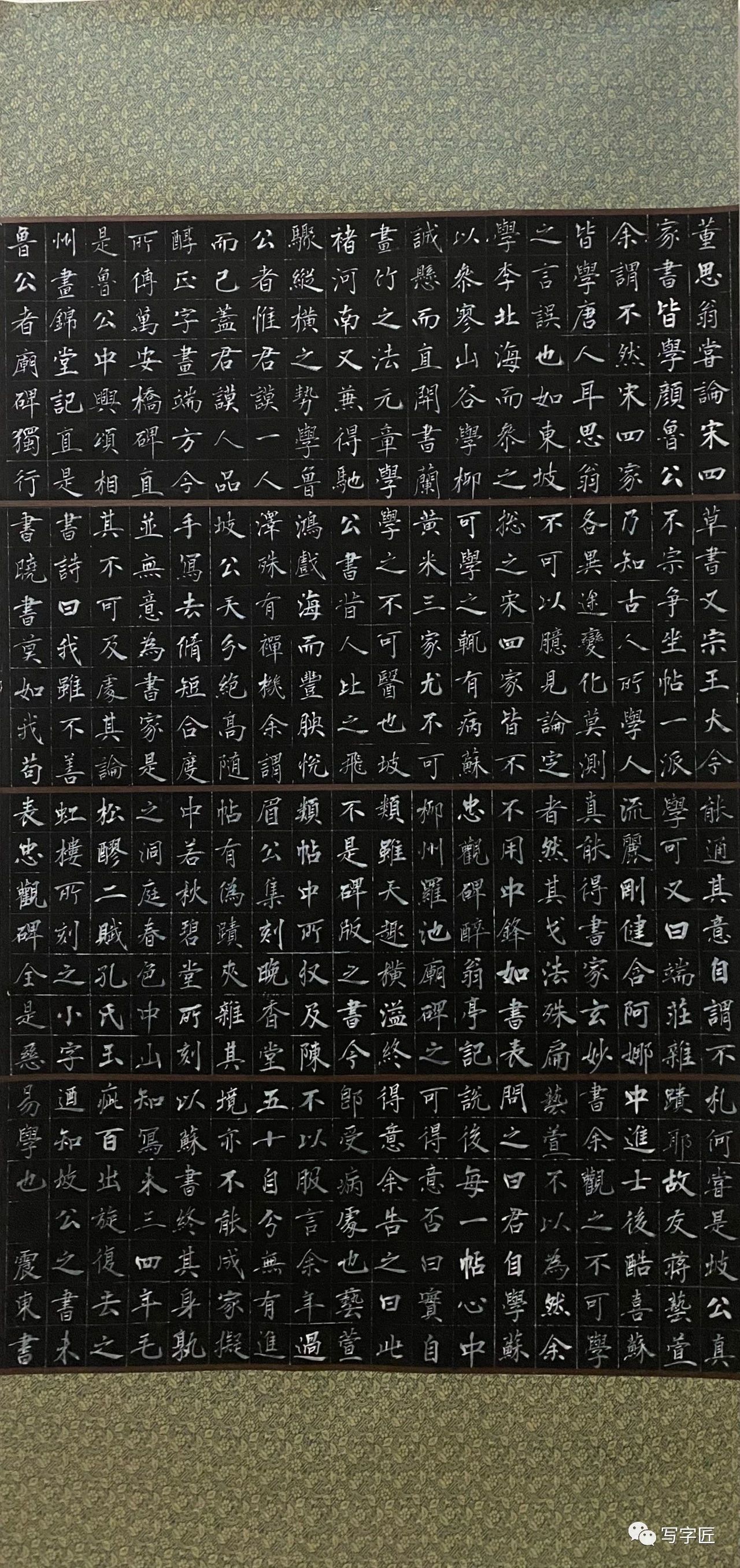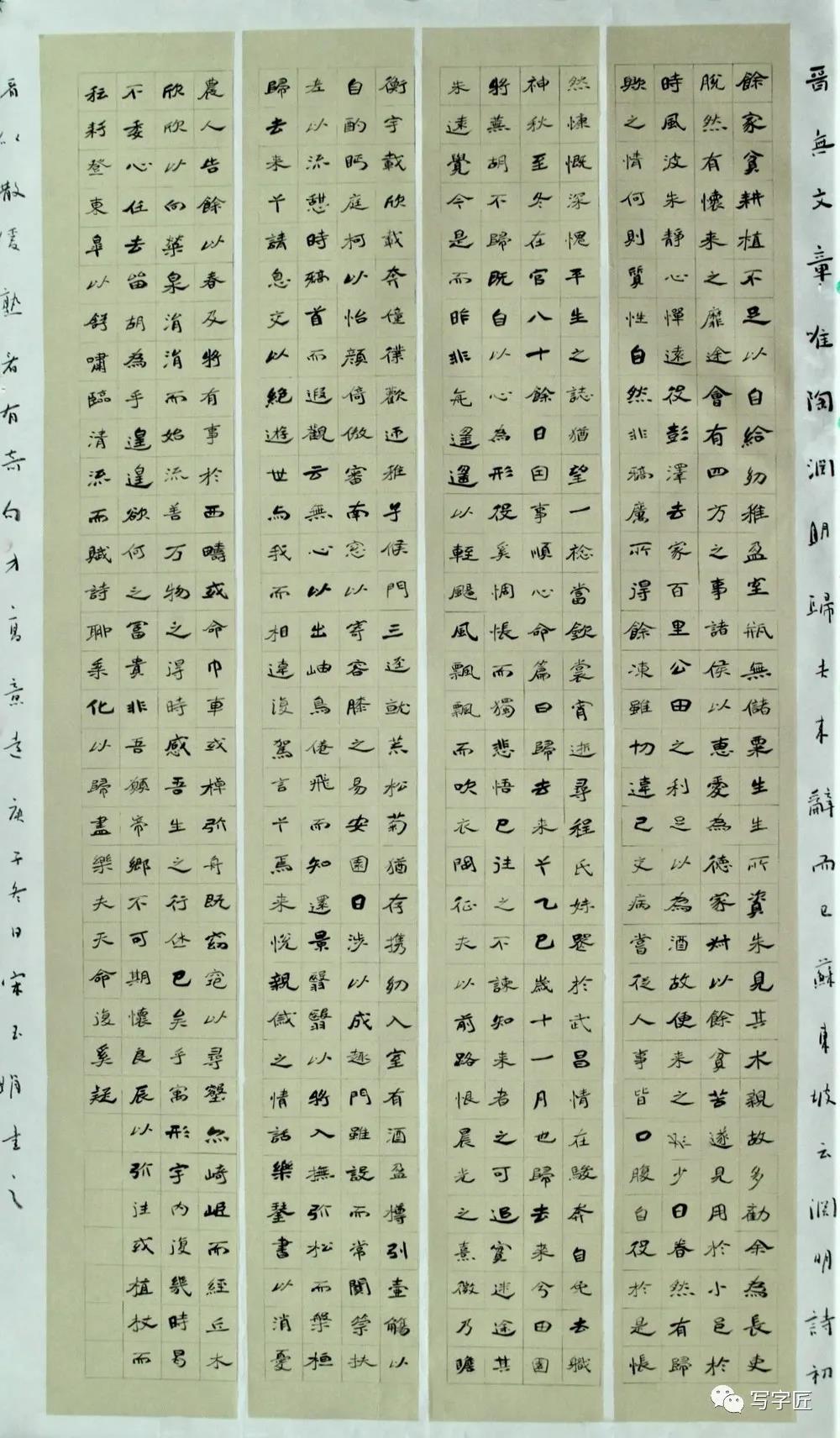 诸子于书,勤而好学,孜孜以求翰墨之妙。鲁黑千里,不息徙足之坚;书道玄妙,弥坚覃思之志。日东升而笔耕,月高悬仍临池。业精于勤,行成于思。笔冢墨池,方窥近道之技;韵法意古,初涉妙造之理。五书之体,兼而能之;诸体之中,先攻隶楷。知擒纵,能运势;阵云千里,勒马横缰。奇瑰犹如东山石,静谧堪似玉溪水;始悟迷津变幻出,法存韵生意态足。东晋韵,李唐法,朝夕溯求之志不消;褚河南,赵承旨,楷模迈世之风高标。