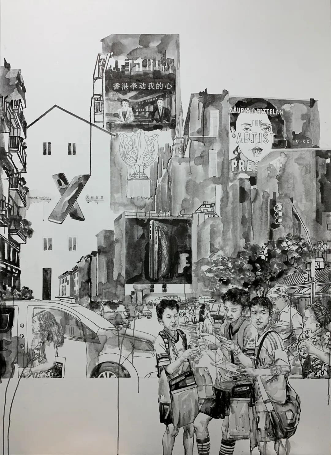 王颖生《时尚香港》布面水墨200cm×140cm 2018年