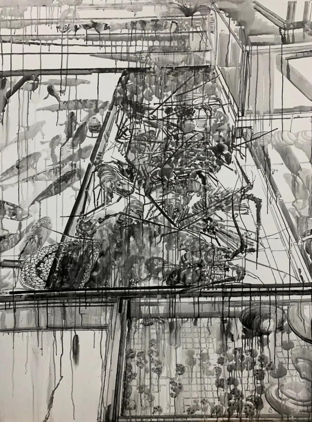 王颖生《香港美食》 布面水墨 200cm×140cm 2018年