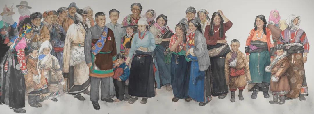 王颖生《把身影根植在群众中——尕布龙》 纸本水墨 300cm×830cm 2017年