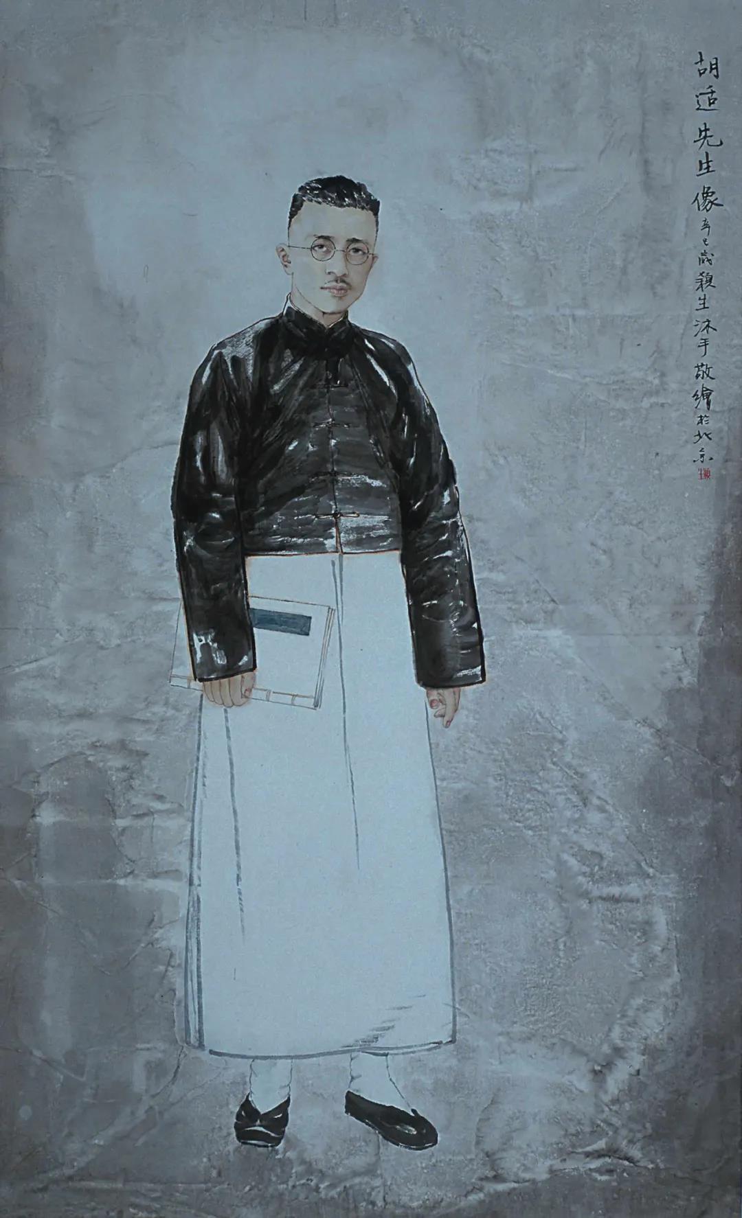 王颖生《大学·胡适先生像》 纸本水墨 200cm×128cm 2002年