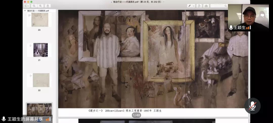 12月15日18:00,中央美术学院教授、博士研究生导师、中央美术学院修复研究院院长、中央美术学院艺术创作研究院院长、中国美协壁画艺委会主任王颖生应邀“云端”连线美院师生,为师生作了一场名为《独自行走——问道西东》的专题讲座。美术与设计学院绘画系、美术学系全体师生参加了此次活动,美术与设计学院副院长解辉主持本次讲座。