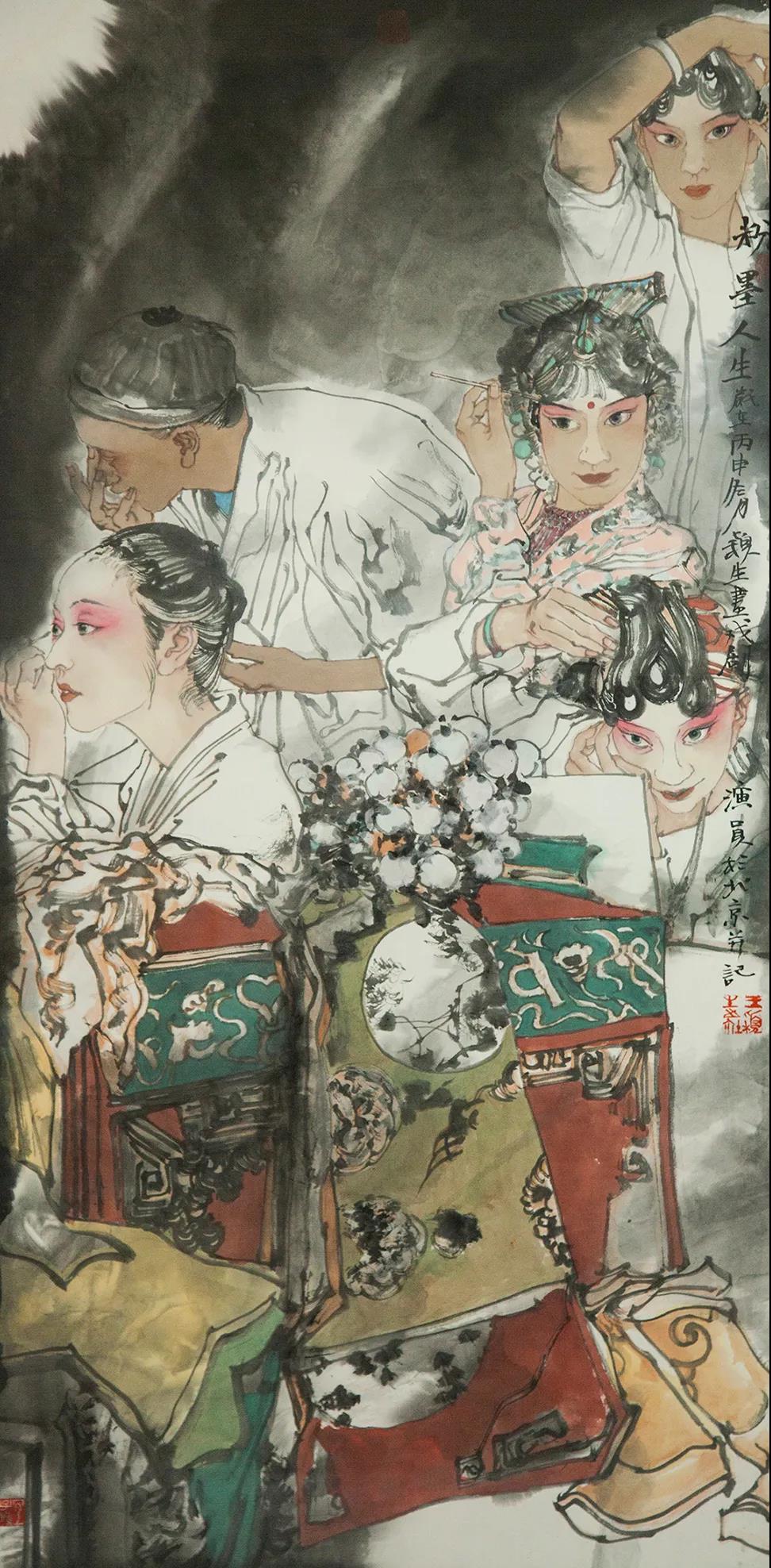 王颖生《粉墨人生》纸本水墨 137.5cm×68.5cm 2016年