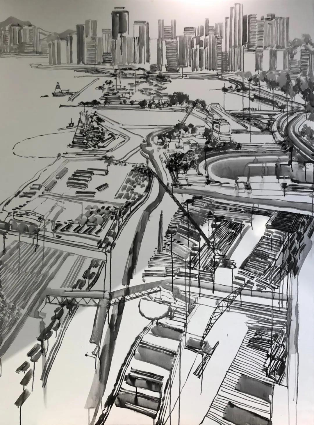王颖生《维多利亚港》布面水墨200cm×140cm 2018年