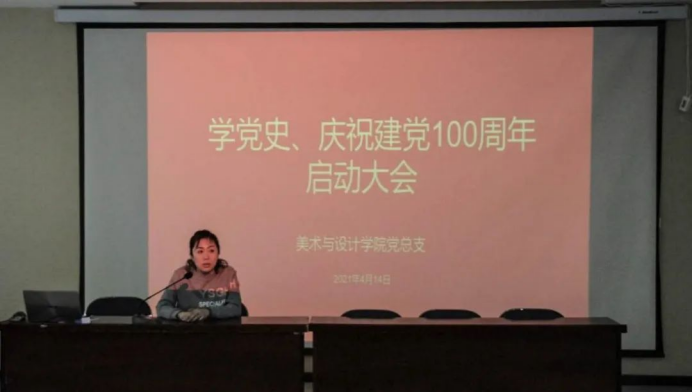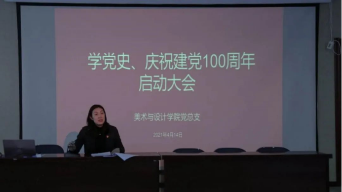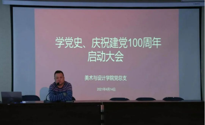 2021年4月14日下午2点,美术与设计学院在美术1号楼禹舜报告厅隆重召开“学党史、庆祝建党100周年”启动大会。美术与设计学院党政领导班子及全体教职工共同参加了本次会议。