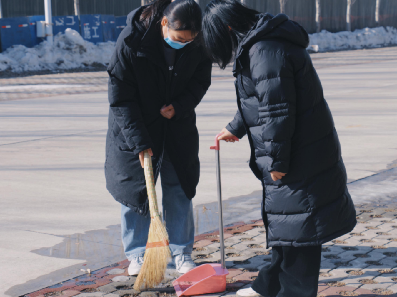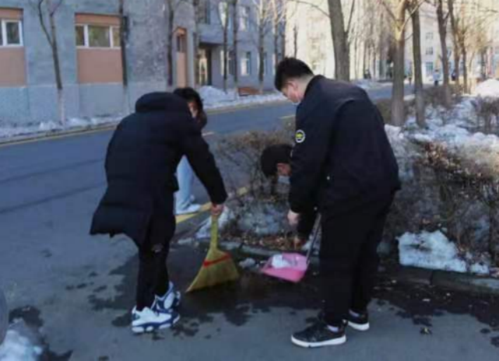 3月4日,美术与设计学院广大团员青年组成“学雷锋”志愿清扫服务队,拿着扫帚和簸箕等工具,对美术楼、实践中心楼宇以及周边道路卫生进行大清理。初春的寒风还有些许刺骨,但也挡不住大家热火朝天的干劲儿!志愿者们用实际行动,践行了“为人民服务”的雷锋精神。