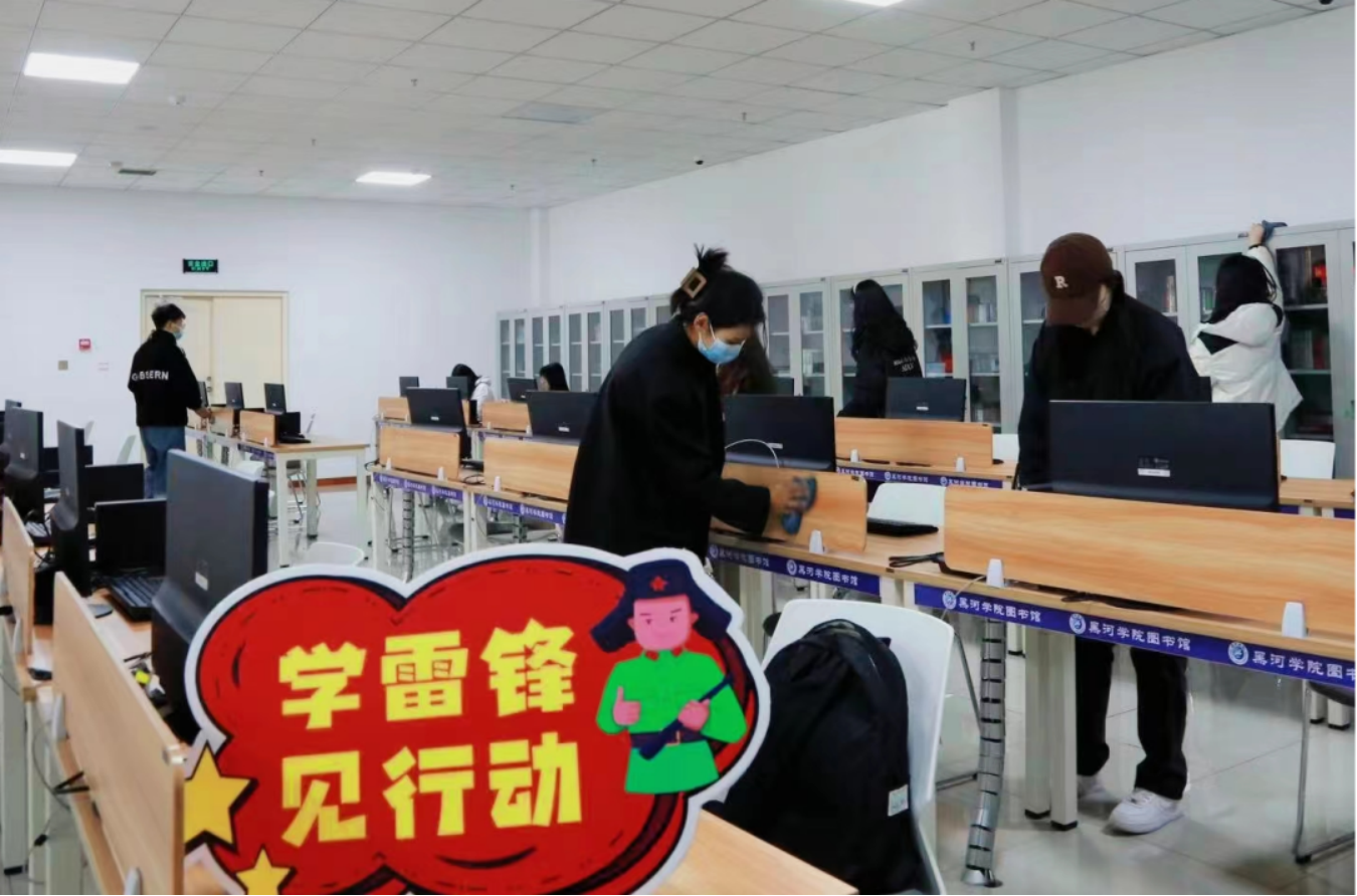 同时,学院团委还积极与学校图书馆对接,在指导老师的带领下,志愿者同学们对学校图书馆电子阅览室、自习区进行了打扫清理。为前来自习和阅读的同学,打造良好的学习环境,以实际行动传承雷锋精神。