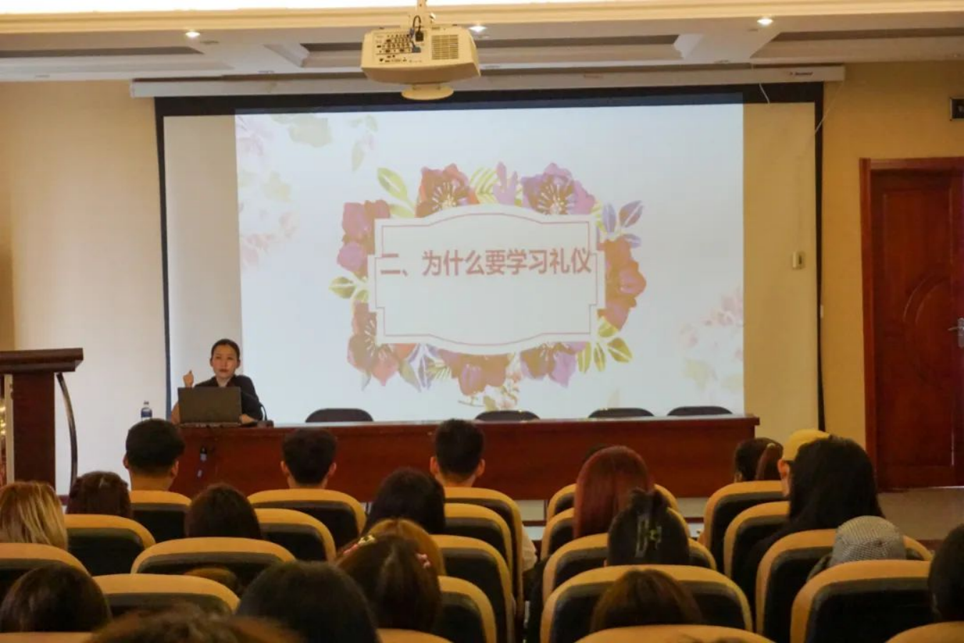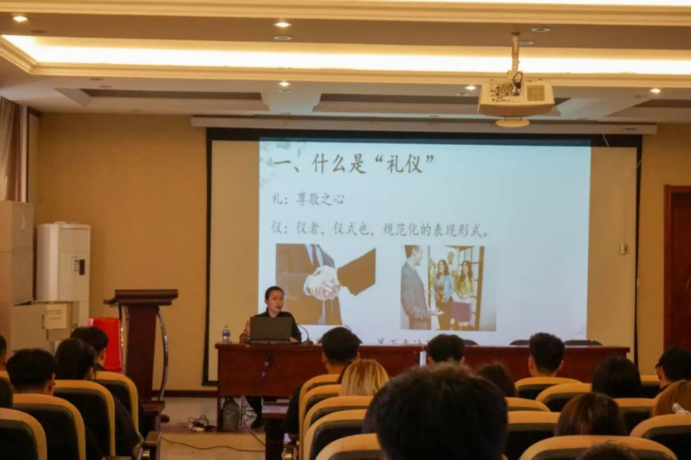 为进一步提升学生干部对行为规范的认识和文明礼仪的运用,展现良好的学生干部形象,美术与设计学院于5月6号在禹舜报告厅召开了学生干部礼仪培训。学院特邀《国际礼仪规范》课程主讲教师车艳竹担任主讲人,全体学生干部参加此次会议。