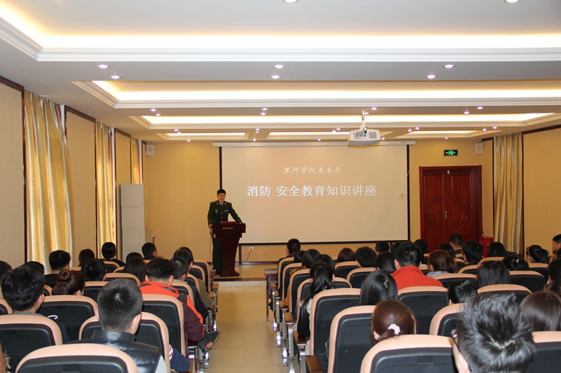 为加强大学生安全意识,全力普及安全知识,2015年3月25日下午2点,美术系在禹舜报告厅举办了安全教育知识讲座。此次讲座由学校保卫处、美术系牵头,邀请黑河市大岛派出所及黑河市消防支队的专业人员为美术系师生120余人进行讲解。