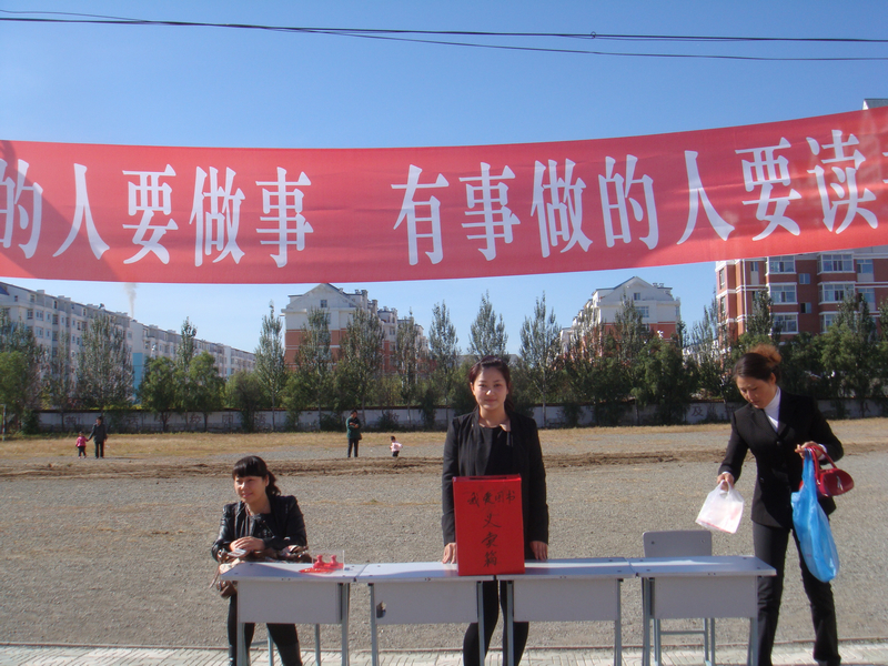 09级学生刘静怡在实习学校参与校园“我爱图书”义卖活动