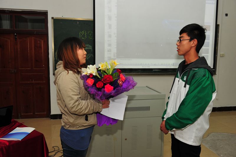 报告会上首先对工作成绩突出的17名优秀班导生进行了表彰并颁发荣誉证书。随后17名班导生逐一围绕自身的工作经历及在担任导生工作期间的心得体会进行了交流发言,剖析了所带班级的特点以及存在的主要问题,共同探讨工作中遇到的难题,最终达到共同提高,更好的开展学生工作的目的。班导生代表夏明玥以自己的切身经历告诉自己的学弟学妹,大学生活最重要的就是明确自己的目标,从而使自己的大学生活过得充实而有意义。