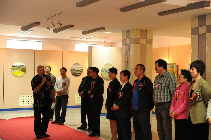 俄罗斯画家、阿穆尔州美协主席瓦吉姆.维克多洛维奇在开幕式现场发言