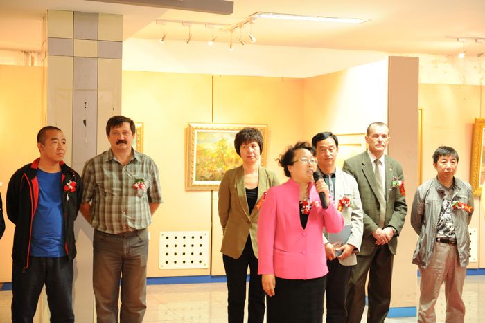 开幕式上,副院长杨宏致辞,她说,美术作品创作是艺术家精心构思,辛苦耕耘的智慧劳动结晶。艺术作品展现了作者的艺术精神世界,风格即人,从艺术创作中我们看到了艺术家超越自我,勇于创造的精神。杨副院长强调,中俄两国人民的友谊源远流长,两国艺术家的友谊在艺术作品交流中得以升华,此次展出的艺术作品是两名艺术创作者多年来艺术教学创作积淀的成果,并希望以这次展览为契机,利用美术系优秀平台,进一步促进中俄艺术文化交流。随后,戚主任讲话,他说,美术系绘画专业现属省级重点专业,国家级特色专业,是我系重点建设专业。历年来,绘画专业师生中优秀人才辈出,曾多次代表学院荣获国家级奖项、参与大型国际艺术展览交流,大大提升了我院在国际间的影响力。本次画展得到了黑河市美协、俄罗斯阿穆尔州美协及社会各界人士的支持与关注,黑河市公安局副局长栾德瑞、黑河瑷珲历史陈列馆馆长陈会学、黑河博物馆办公室主任及部分企业人士出席了此次画展开幕。