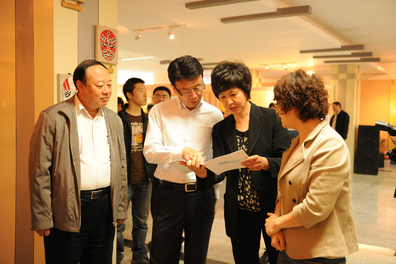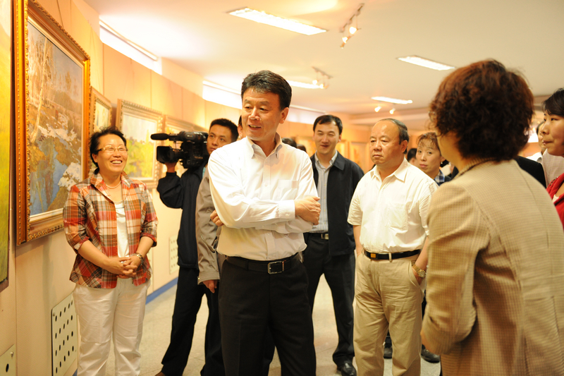 国家人力资源与社会保障部副部长、国家外国专家局局长张建国参观美术系展厅并听取美术系主任葛淑君汇报