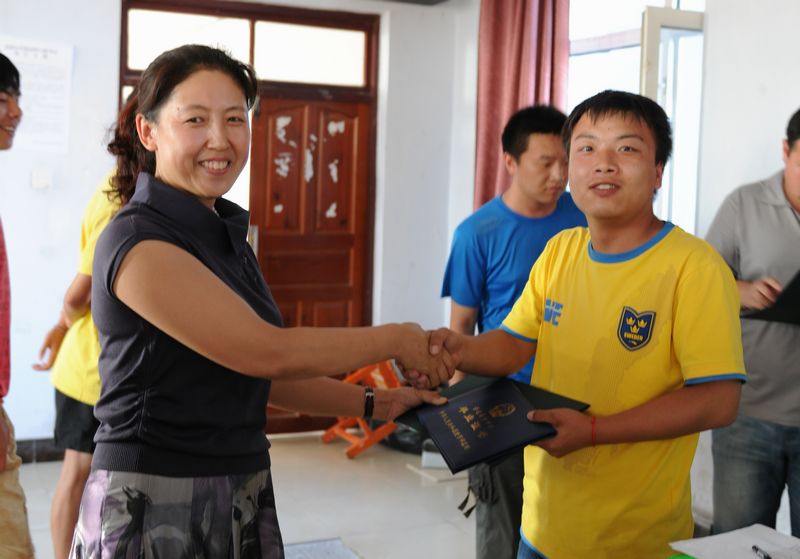 美术系党总支书记姜丽萍为毕业生颁发证书