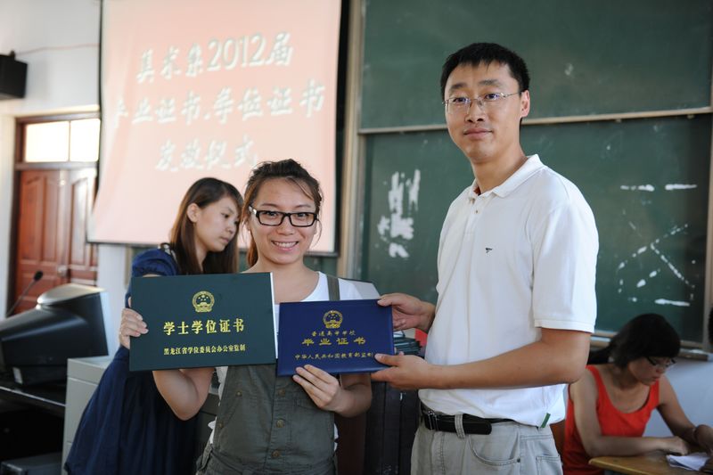 颁发仪式上,美术系党总支书记姜丽萍讲话,她对毕业生圆满完成四年学业表示祝贺,并祝愿毕业生步入工作岗位后,能够展示美术人的良好职业素养,成就精彩人生。副书记王小娟、学团办主任张鑫、辅导员杨艳彦为08级毕业生颁发了毕业证书与学位证书。学团办主任张鑫就报到证的使用方法、户口迁移、档案调转等注意事项进行了详尽的说明。毕业生们激动地从老师手中接过毕业证书及2012届毕业生作品集,一同合影留念。