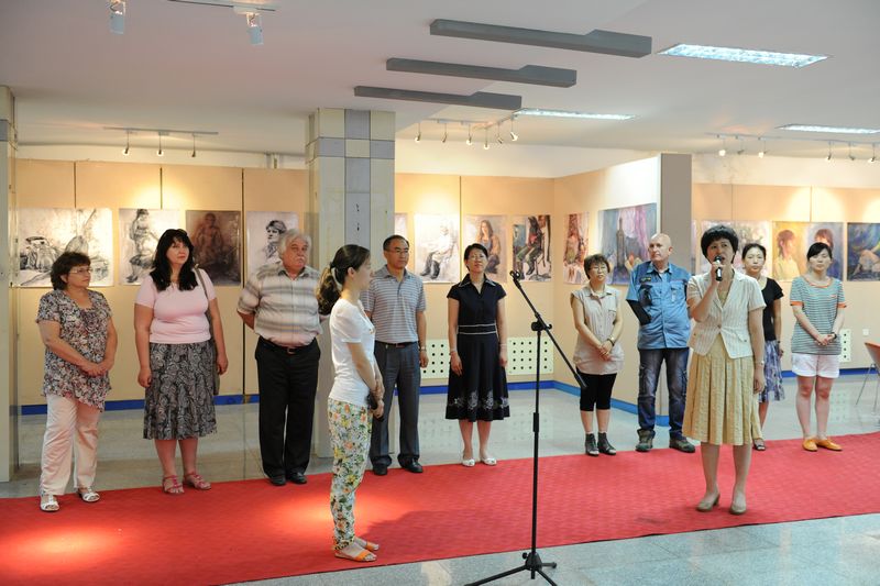 本次作品展展出阿穆尔大学工艺与艺术设计系作品70余幅,均为阿穆尔大学优秀毕业作品,作品类型多样,内容丰富,包括人物油画、静物油画、人物素描、陶艺作品、招贴海报设计、室内设计、服装设计等各种形式、风格的毕业作品。展示了在中俄不同文化背景下,高校在艺术教育过程中的不同设计角度与理念,促进了两校学生之间的交流与学习。 开幕式上,阿穆尔国立大学工艺与艺术设计系主任梅德维杰夫在开幕式上致辞,他说,阿穆尔大学工艺与艺术设计系与黑河学院美术系建立了良好交流合作关系,一直以来,在教学、科研等交流领域取得了可喜成绩。希望不断加强两校之间的交流与合作,共创美好未来。