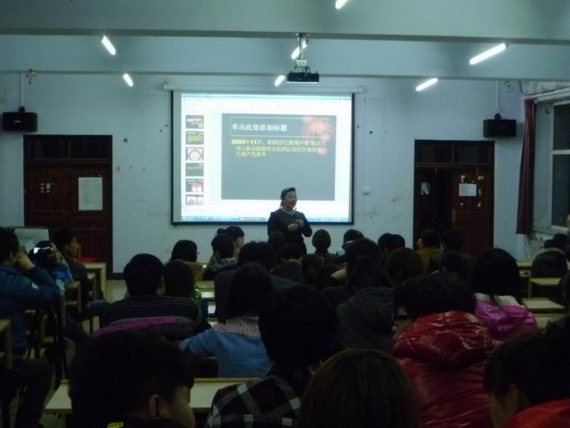 2012年4月6日18:30,由书法理论教研室逯红梅副教授主讲的“中国传统节日——清明节中的文化美学精神”,在美术系虞舜报告厅正式举行,本次讲座的开始,标志着由美术系学团办举办的本学期学生工作系列讲座拉开了帷幕,美术系百余名学生出席了本次讲座。