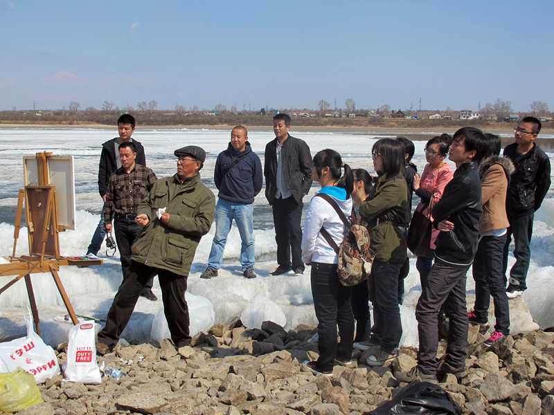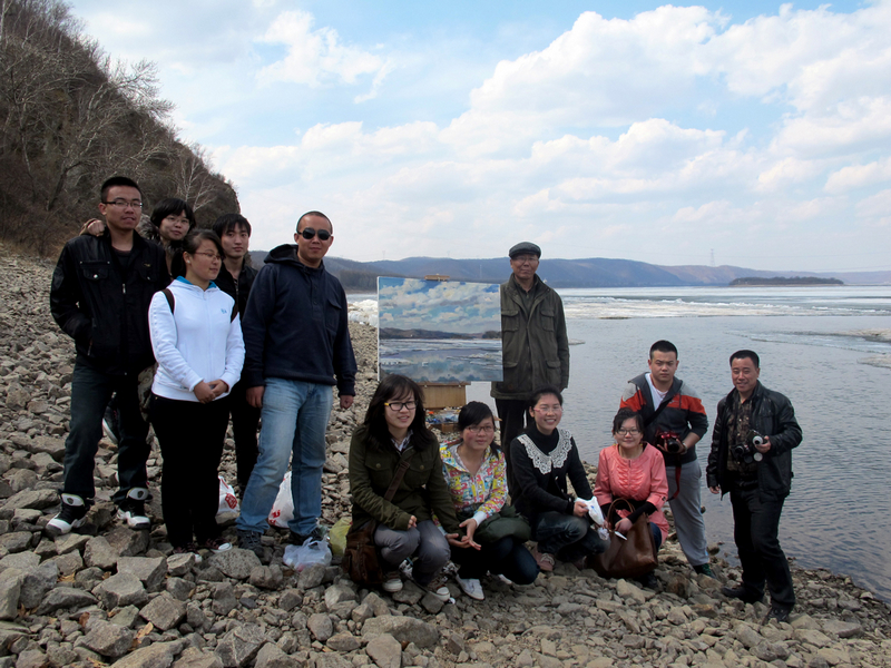 4月27日,清华大学美术学院教授、硕士生导师王铁牛来黑河写生,美术系青年教师牟克接待并陪同,部分油画专业的学生也参加了此次写生活动。