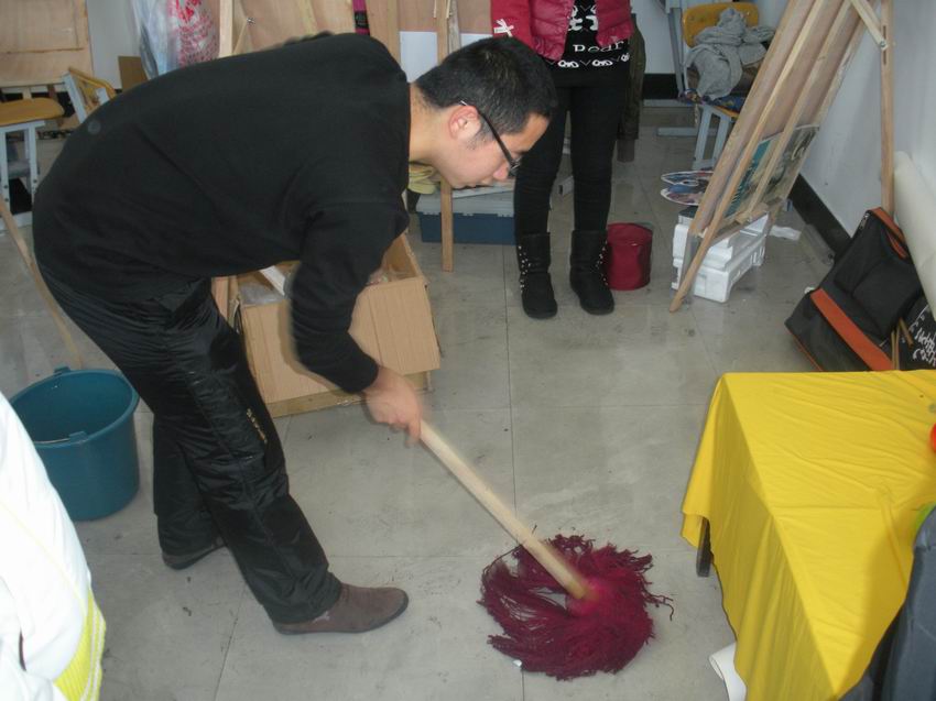 为贯彻落实学院关于深入开展创先争优活动的文件精神,美术系党总支开展“人人为环保、环保为人人”党员公益活动,组织美术系全体学生党员清扫美术系各教学楼的教室卫生。