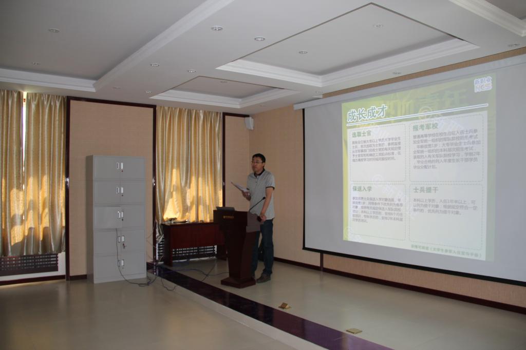 整个宣讲会以 “莘莘学子,投笔从戎,保家卫国,丰富人生”为主题,向同学们讲解了 大学生入伍对国家、对自己的重要意义,详细解读了大学生入伍的相关政策,并着重解读了国家教育部2015年出台的最新政策。