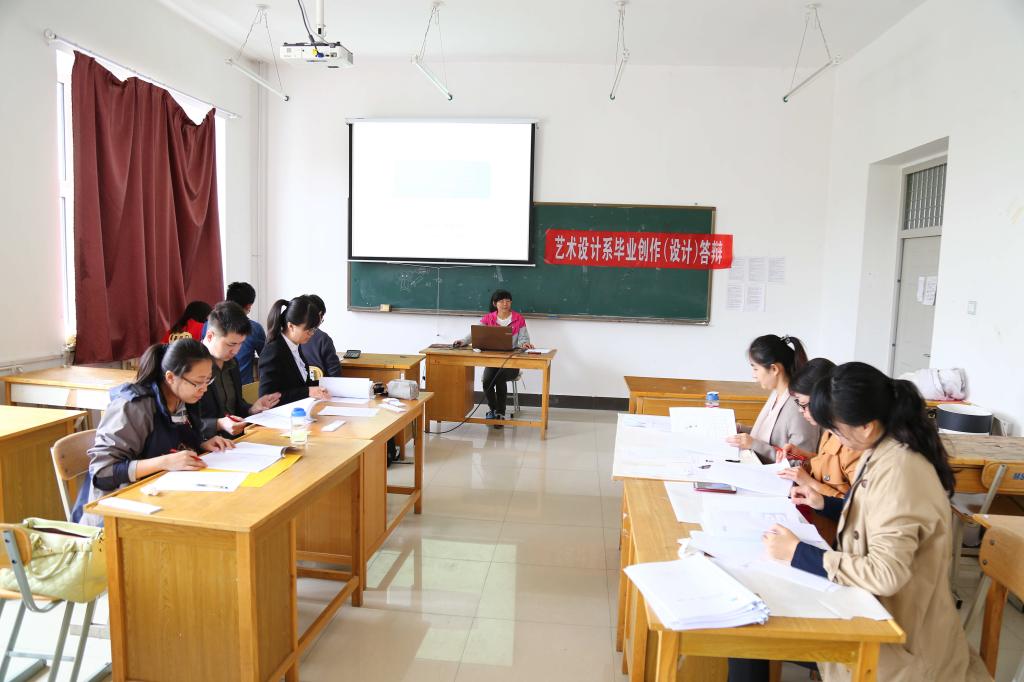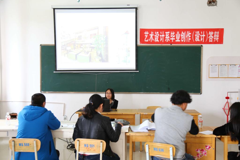 在答辩工作中,各答辩小组严格按照学校有关规定要求,认真组织本次论文答辩各个环节的工作。本次答辩过程主要分为学生答辩陈述、评审老师提问和学生回答问题三个部分。美术系各专业以口述陈述形式进行答辩,设计系以ppt课件展示的形式进行陈述答辩,答辩形式专业特色突出。答辩期间,各专业评审老师就学生的答辩内容和立论观点、专业知识、表述能力等方面进行综合评价,并指出了进一步研究的方向和具体的修改意见。