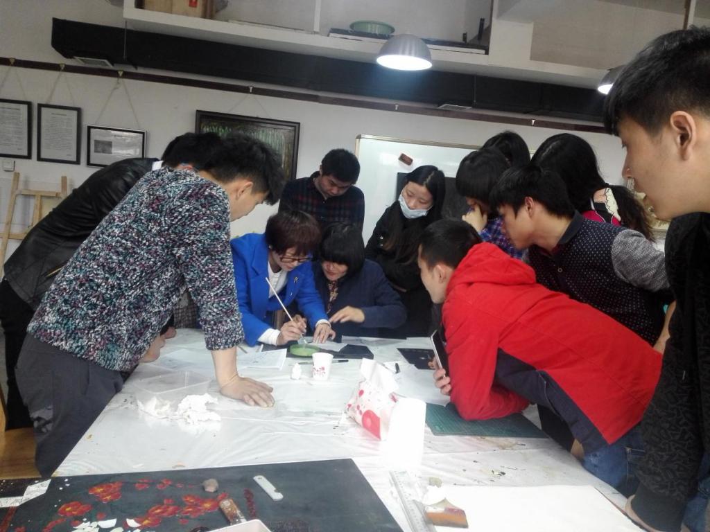 4月19日,福建省工艺美术研究院陈冰老师亲临美术学院,为我院师生指导漆画艺术创作并举办专题讲座,详细讲解了无勾勒晕金漆画的制作步骤。