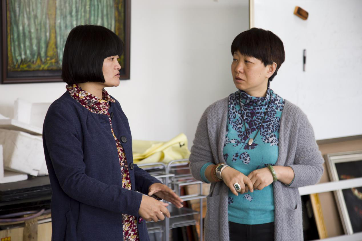下午两点,魏宁副教授和陈冰老师与美术学院艺术与设计系主任王玉云、漆画教师袁绪鹏进行了学术交流与研讨。