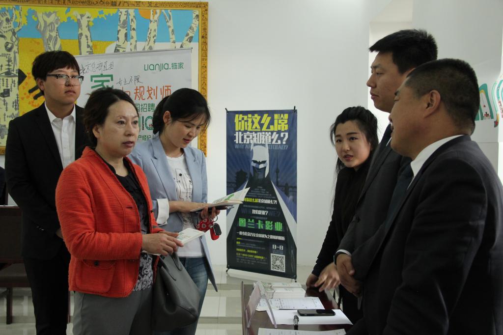 北京链家房地产经纪有限公司经理吴大勇、北京图兰卡影业(北京)有限公司办公室主任吴科盟、哈尔滨市品源科技有限公司市场部经理赵海龙、大庆吉的堡汗城国际天鹅堡幼儿园园长曲静、黑河市龙采科技集团黑河分公司(百度黑河地区营销服务中心)总经理李广友、黑河市索凡科技开发有限公司部门经理王超群、黑龙江省句仪慧美文化传媒有限公司总经理陈曦等来自北京、哈尔滨、大庆的9家用人代单位表出席了招聘会。