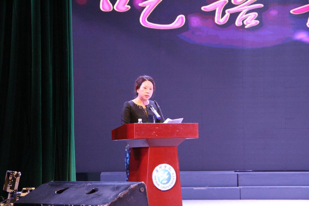 美术与设计学院党总支书记李珊在迎新晚会开幕式上致辞 |