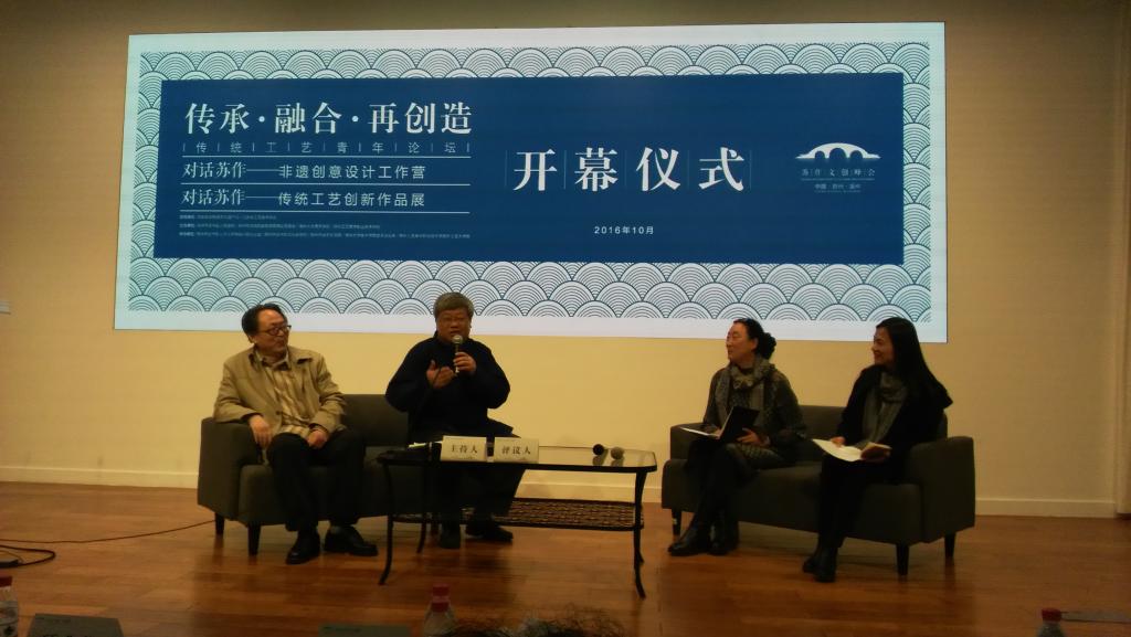 2016年苏作文创峰会在文化部非物质文化遗产司、江苏省工艺美术学会指导下,由苏州市吴中区人民政府、清华大学美术学院、苏州工艺美术职业技术学院联合主办。会议中举行了“传承·融合·再创造”的主题论坛。围绕此中心主题,论坛共包括一个主论坛、三个分论坛和二个展览。主论坛“理论与批评——面向当代的传统工艺研究”是青年学者和批评家论坛,与会专家与青年学者就传统工艺在当代的交融与变迁、传承与创新、行业与产业、技艺与艺术等议题进行广泛研讨。