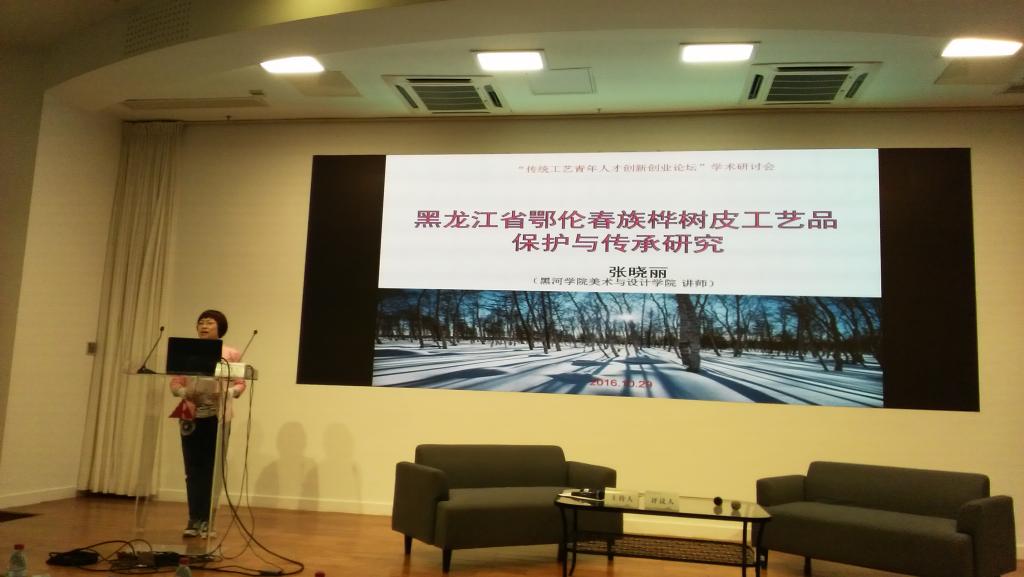 10月29-30日,美术与设计学院张晓丽老师应邀参加“2016年苏作文创峰会青年学者和批评家论坛:传承与创新”。张晓丽老师提交了“黑龙江省鄂伦春桦树皮工艺品传承与创新研究”的论文并作主题报告。