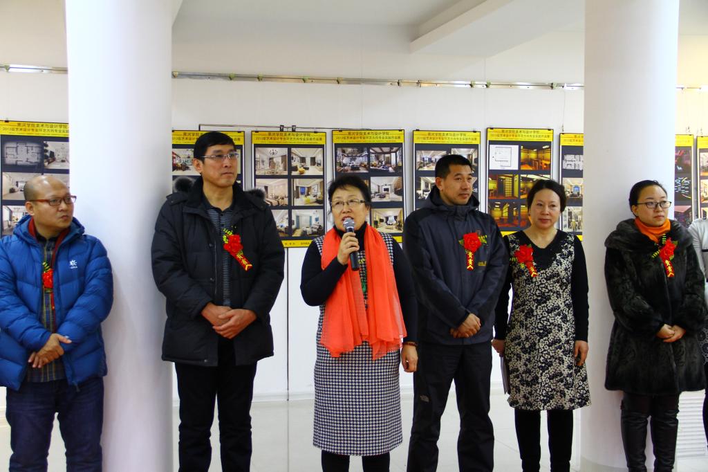 本次实践教学作品展涵盖了学院设计系和美术系两组内容分阶段展出。本次展出内容为设计系实践教学作品,展示作品均为设计系本学期阶段性教学成果。作品包含漆画、陶艺、园林景观设计、平面设计、室内设计等艺术作品共60余件。开幕式上,黑河学院党委副书记杨宏、美术与设计学院院长戚锋分别为此次展览致开幕词,美术与设计学院副院长王小娟宣读本次展览优秀作品的学生获奖名单,随后,教师代表和学生代表分别做了开幕式发言。