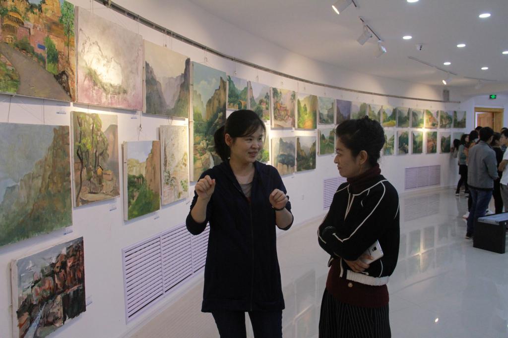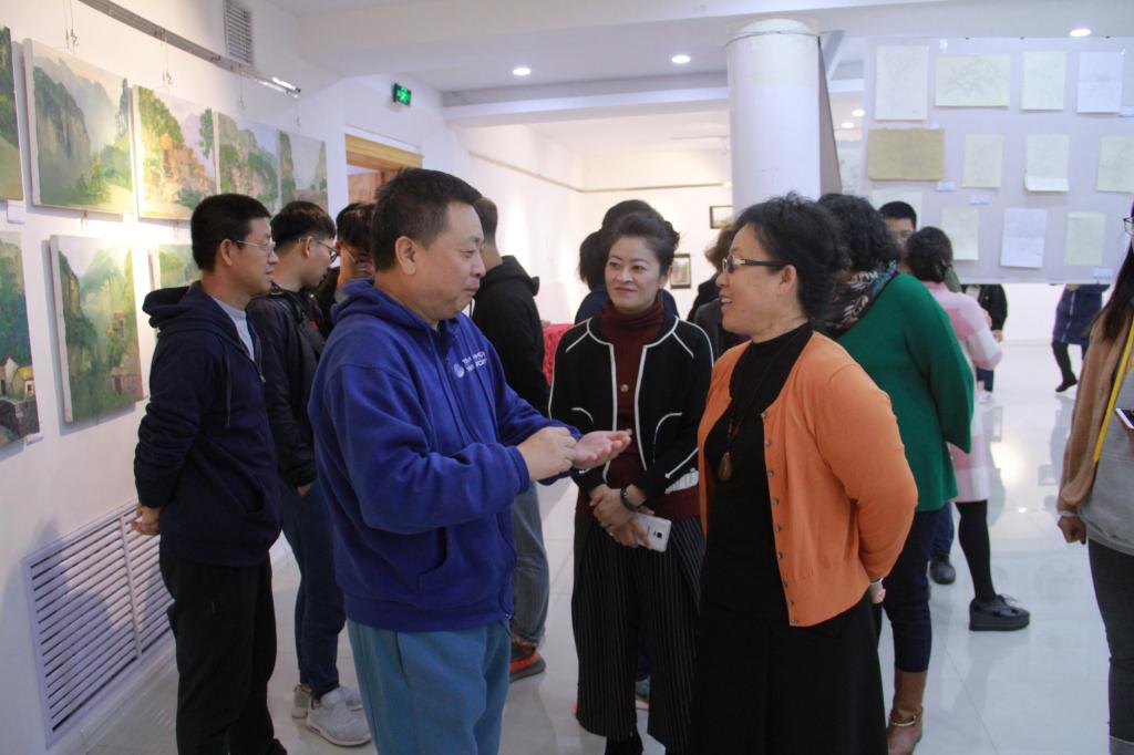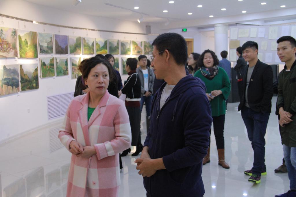 9月11日上午9点58分,黑河学院美术与设计学院2017年革命老区太行山宏村写生师生作品展在美术楼展厅开幕。黑河学院党委副书记杨宏、宣传部部长吴春娟、美术与设计学院院长戚锋、书记李珊、副院长王小娟、副书记王琦及学校百余名师生观看了本次作品展。