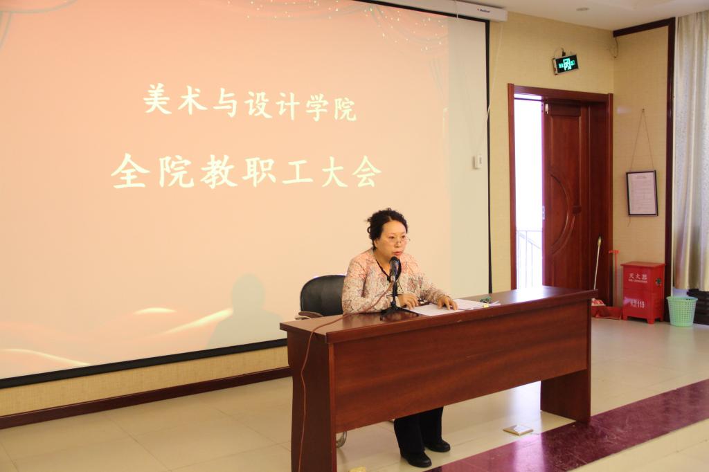 10月17日上午九点四十五分,美术与设计学院在禹舜报告厅召开了全院教职工大会。会上,党总支书记李珊亲自带领大家学习了我校教职工考勤与请假的有关规定,对接下来各教职工的工作纪律、工作作风提出了相应的要求。她强调,扎实推进美院教职工工作风建设,认真学习各类纪律文件,要以全新的面貌迎接中共十九大的胜利召开,必须一步一个脚印地向我院“十三五规划”的各项目标迈进。
