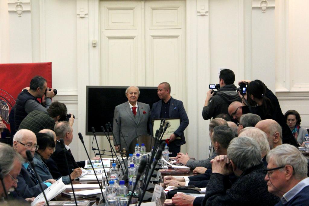 据悉,我院教师牟克是首位获得该奖项的华人画家,这一奖项是对中国画家牟克艺术成就的高度认可。近年来牟克老师在国内外多项展览中获得了令人瞩目的成就,牟克老师2013年国家公派赴莫斯科国立苏里科夫美术学院做高级研究访问学者,进入萨拉霍夫工作室进行艺术创作;2014年入国际艺术基金委员会成员,同年获得俄罗斯联邦艺术科学院授予乌特金奖章;2015年荣获俄罗斯艺术科学院终身荣誉院士;2015年—2018年国家公派赴苏里科夫美术学院攻读博士;2016年,创作的系列油画作品《托尔斯泰——战争与和平》参加“全俄青年画家美术展览”, 获得俄罗斯美术家协会银质勋章。2017年,苏里科夫美术学院授予牟克老师荣誉教授头衔;俄罗斯美术家协会颁发会员证书。在此期间,牟克老师所取得的成绩被国内人民网、光明日报等主流媒体广泛报道。牟克老师在俄罗斯公派留学期间为中俄文化艺术交流做出了突出贡献,促进了中俄文化之间的交流与传播和两国艺术领域的互通与合作。