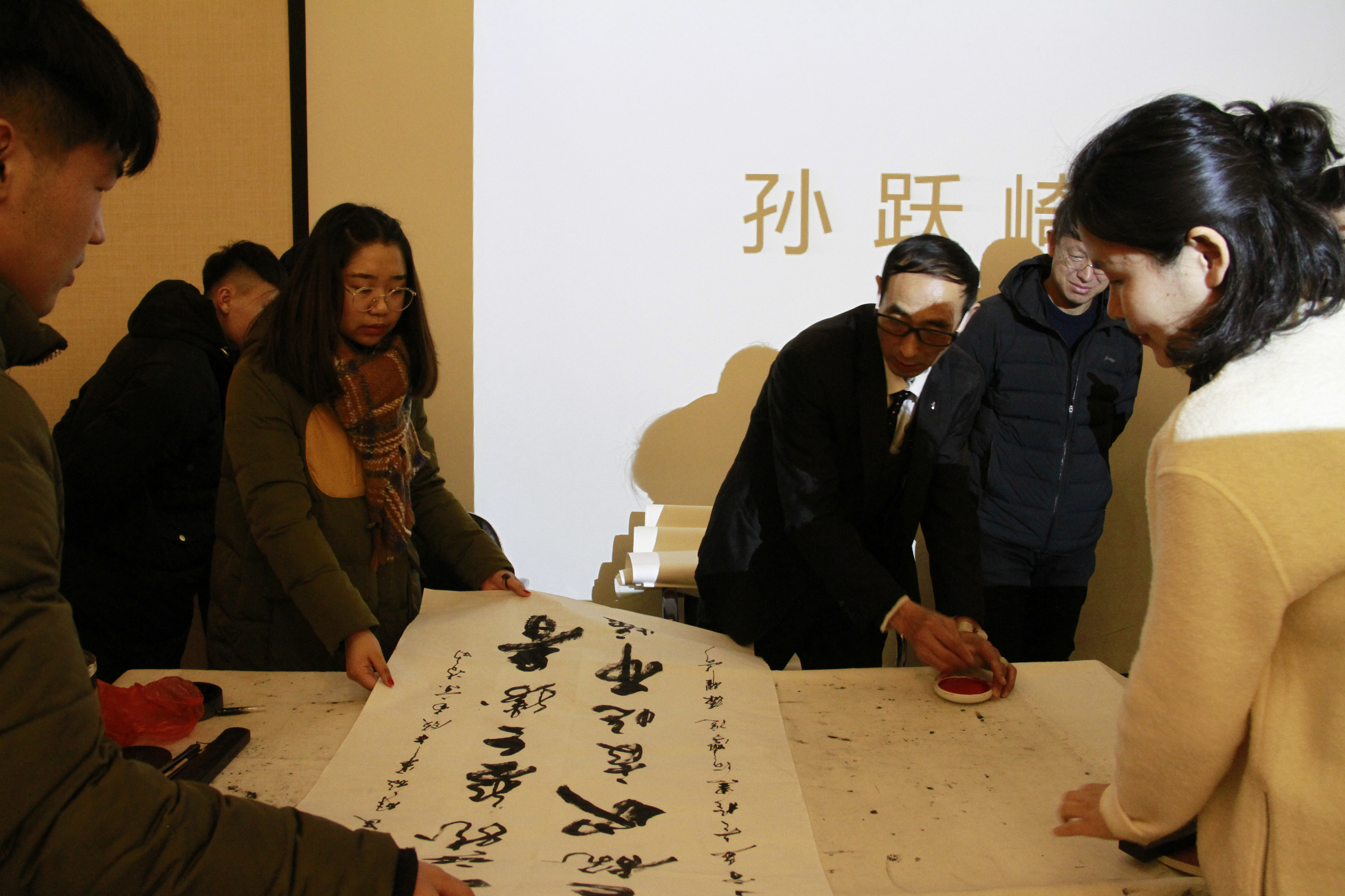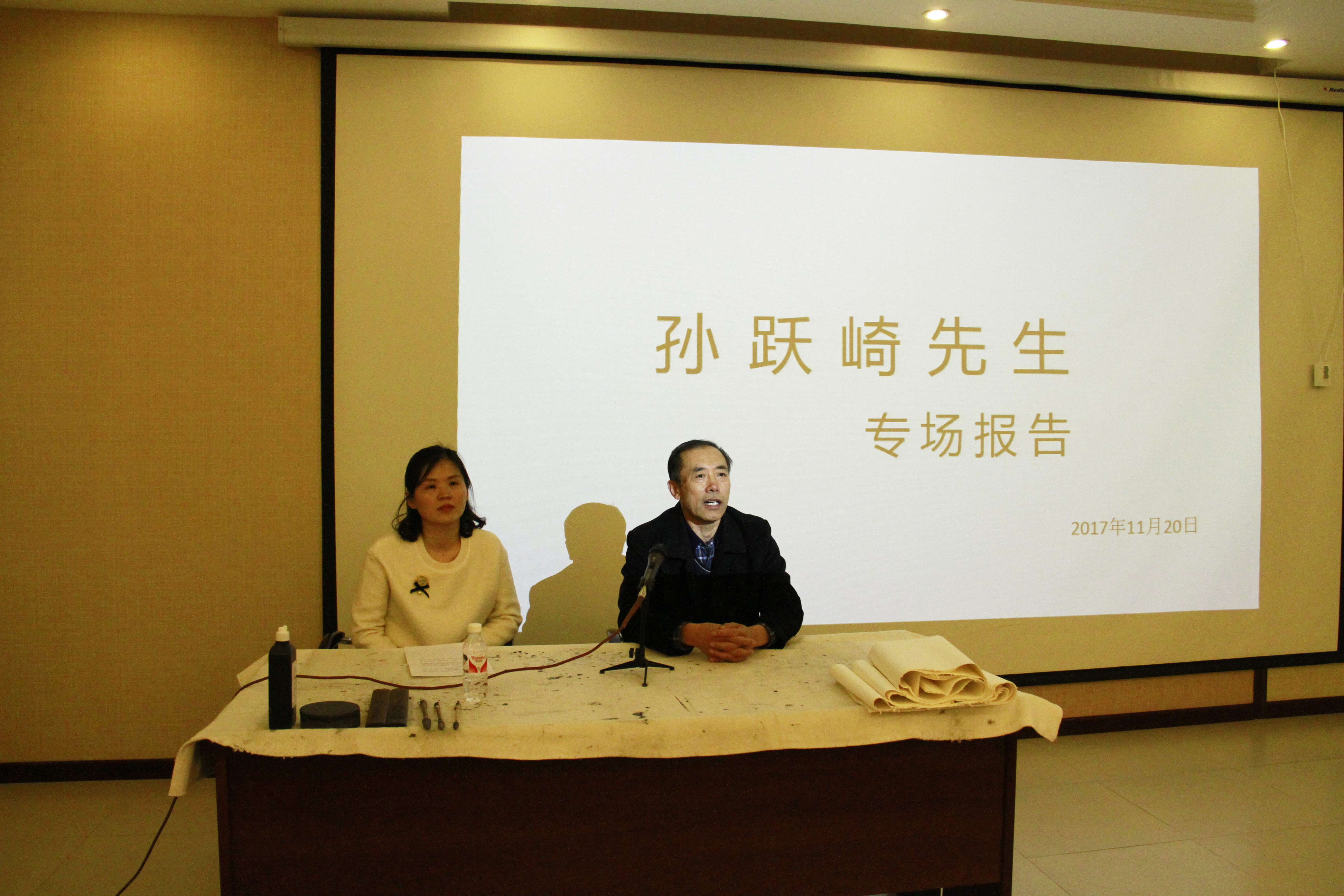 2017年11月20日,中国书画家协会理事孙跃崎、书法家孙诗增、画家宋海鹰一行受邀到美术与设计学院举办学术讲座,黑河学院党委副书记李廷栋、美术与设计学院副院长王小娟及书法、国画专业师生参加了本次讲座。