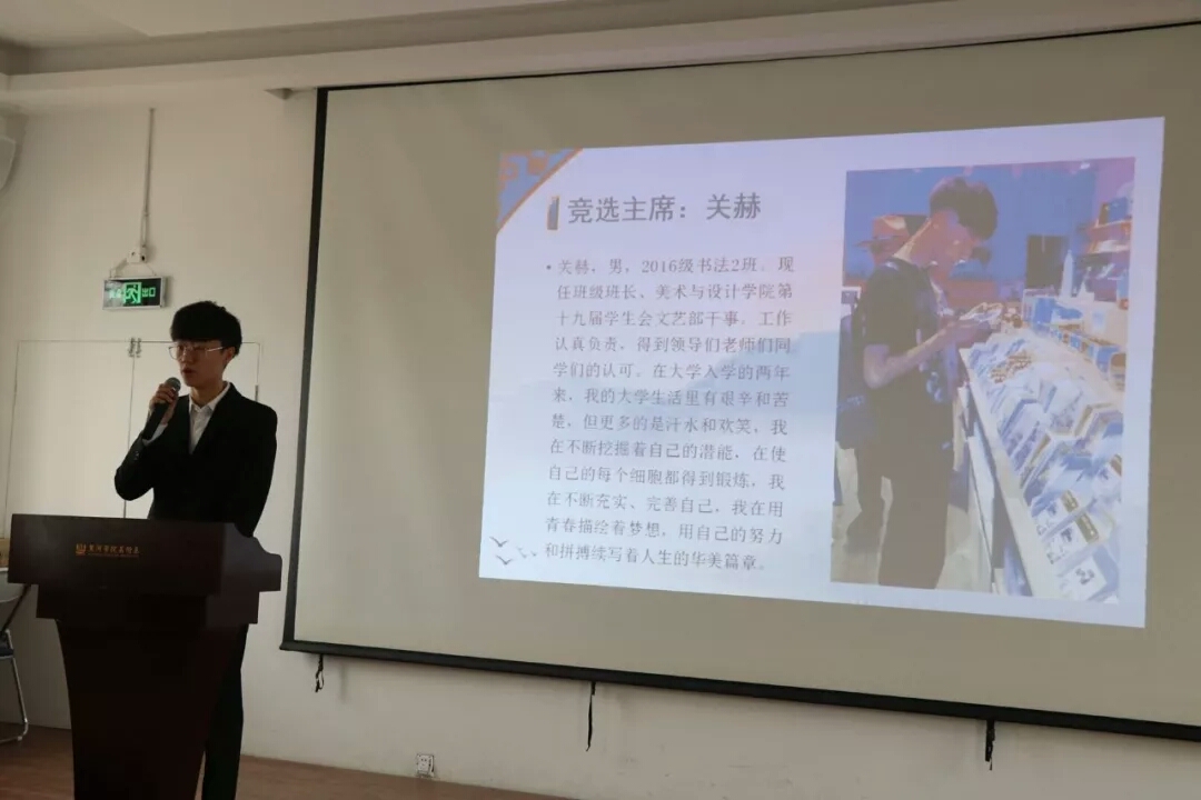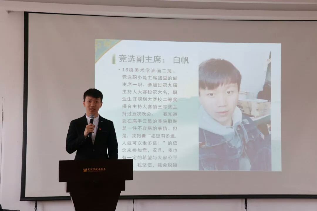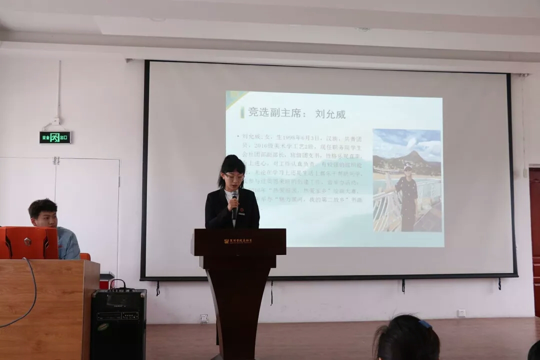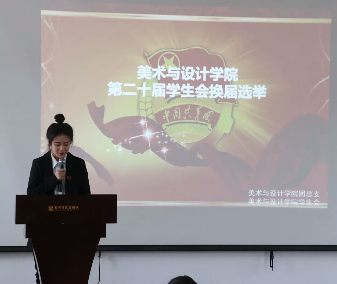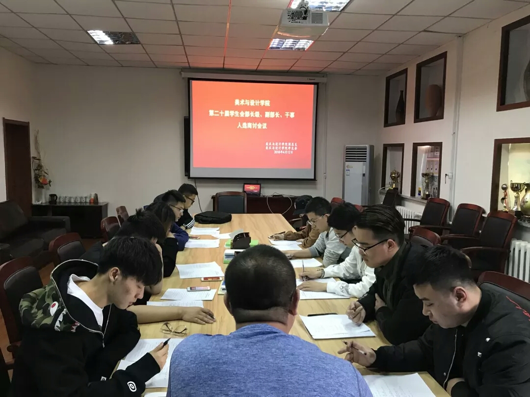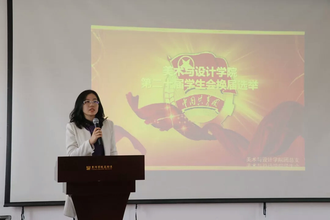 4月11日,美术与设计学院举行了学生会换届选举活动。党总支副书记王琦、学团办主任白云涛等评审教师和本次换届活动参选人员及19届学生会全体成员共同出席本次活动。
