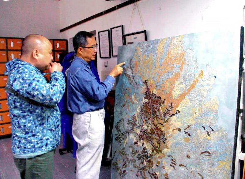 讲座结束,陈教授在我院漆艺方向袁绪鹏老师的带领下参观了我院艺术实践中心漆画工作室。在工作室建设方面提出了宝贵的意见,在漆艺的制作工艺上进行了精心的指点,使我院漆艺方向学生在以后的学习中有了更加明确的目标。