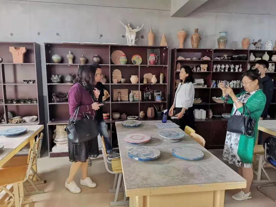在马克思主义学院院长姜丽萍教授、吴立红教授的指引下,来自东北师范大学的博士生导师郭凤志教授到访艺术实验教学中心考察、交流。郭教授先后走访了包括工艺美术、绘画、书法专业在内的十余个工作室,对中心各工作室的建制、学习模式、实践成果非常感兴趣,并与实践中的学生进行学术的探讨和交流。对于艺术中心的地域特色、实践成果,郭教授给予了很高的赞誉,并鼓励师生们一定要为所从事的艺术工作、人类美的事业投入更多的时间和精力。