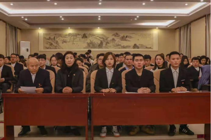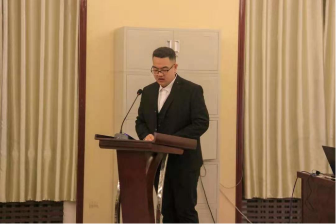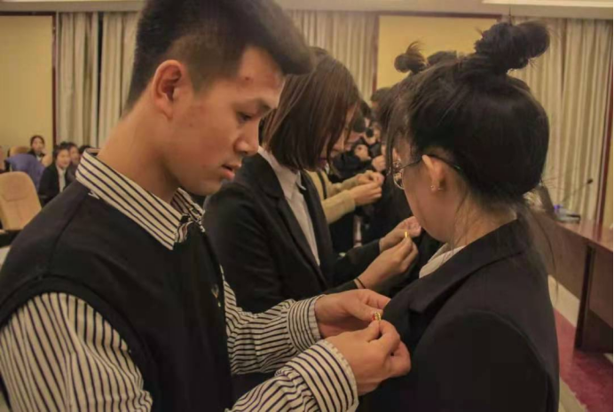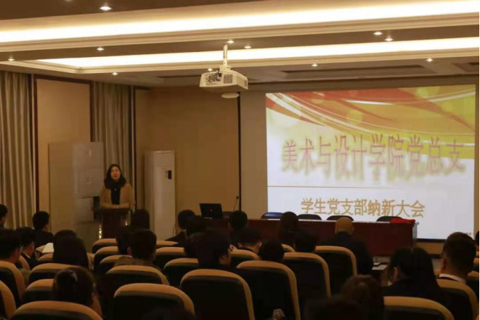 2020年11月10日下午6时,美术与设计学院党总支在美术楼禹舜报告厅举行了学生党支部纳新大会,美术与设计学院党总支书记胡颖为新党员佩戴党徽并讲话,学生党支部书记丛永柱主持此次大会。