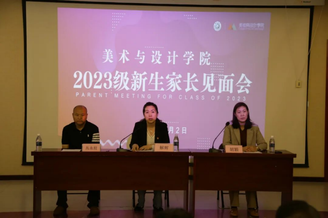 2023年9月2日的下午2点,美术与设计学院在禹舜报告厅举行了2023级新生家长见面会。本次家长见面会由美术与设计学院党总支书记胡颖主持,美术与设计学院院长解辉、党总支副书记丛永柱出席会议并与新生家长进行了广泛交流。