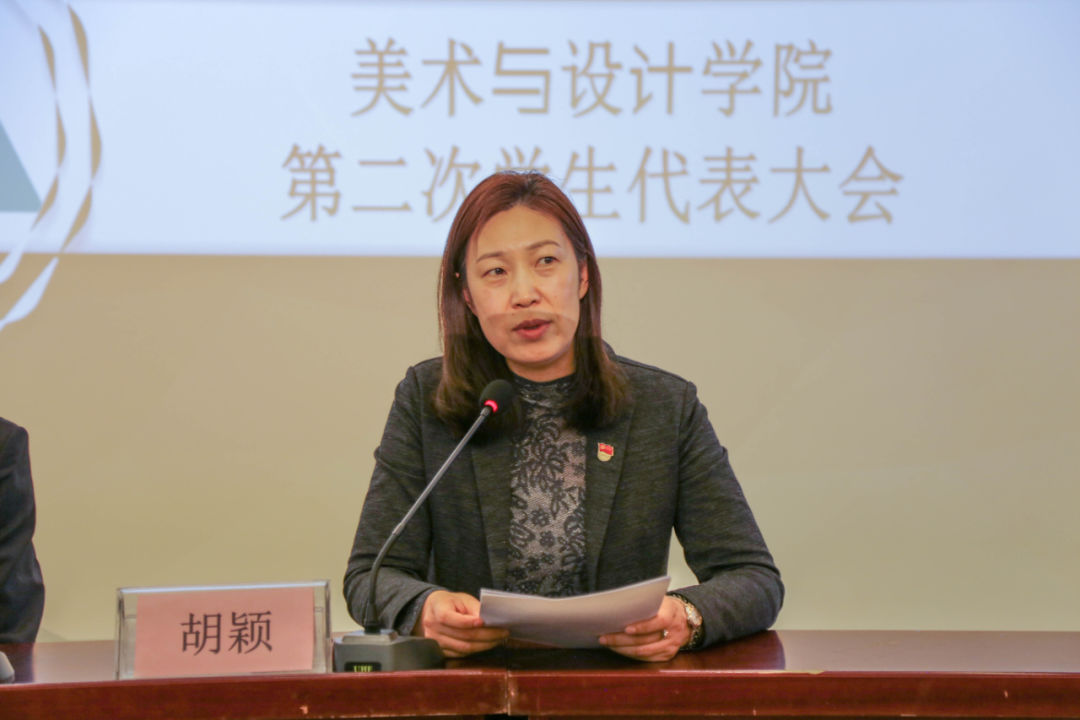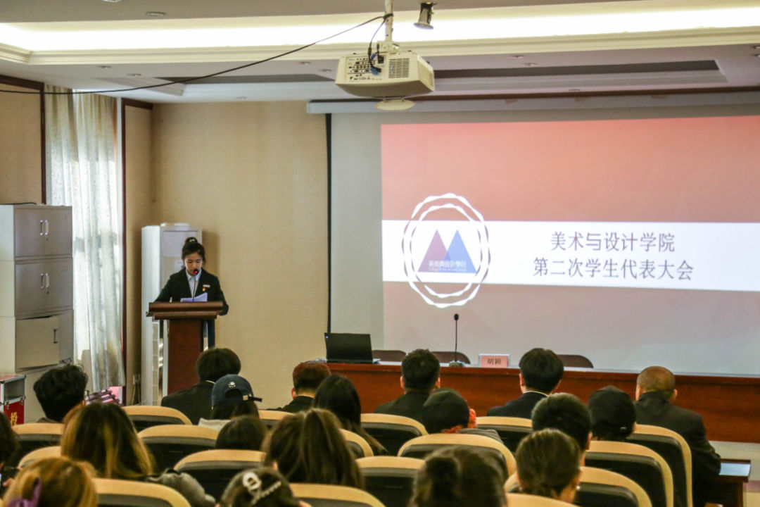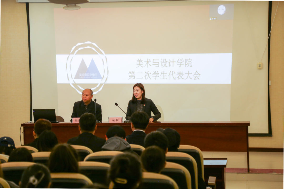2023年9月20日,美术与设计学院在禹舜报告厅召开了2023年第二次学生代表大会。学生代表大会作为学校学生层面上的做高层次会议,在学校的建设与发展中,在学生的教育与管理中,在学生的合法权益保障与充分发挥学生主人翁作用等方面发挥着重要作用。大会进行第一项,美术与设计学院党总支胡颖发表讲话,胡颖老师提出三点要求:“一、不忘初心,坚定理想信念,做志存高远的有志好青年,二、坚持勤奋学习,不断求知进步,三、磨砺顽强意志,立志艰苦奋斗。”“青年强则国强”党总支胡颖号召各位代表和同学勇于实践,勇于担当,不计得失,做走在时代前列的奋进者。