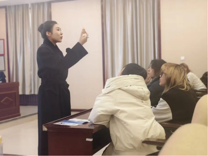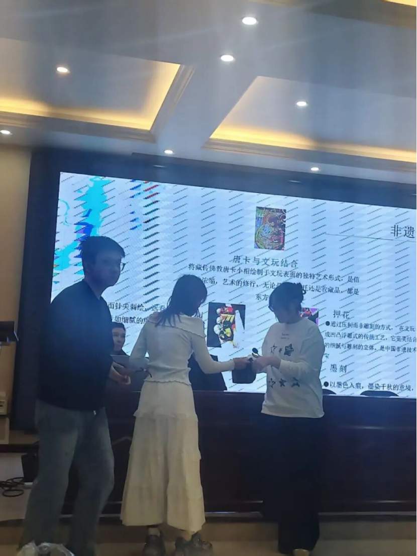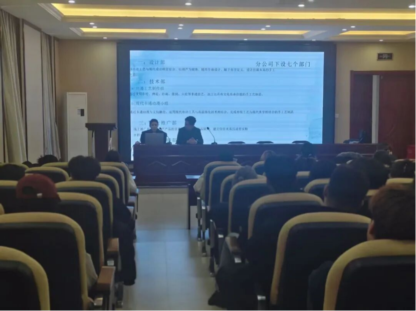 宣讲会上,北京乾坤宝九州商贸有限公司的嘉宾团队以“传统工艺的当代传承与创新”为主题,结合企业在非遗技艺市场化、创意化方面的实践经验,为同学们展开分享。